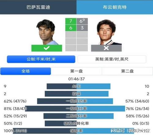進(jìn)入第二盤,布云朝克特未能及時(shí)調(diào)整,失誤增多。巴薩瓦雷迪則乘勝追擊,憑借穩(wěn)健的發(fā)揮,以6-3再下一盤,鎖定勝局。